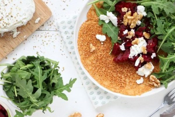 Zoete aardappel pannenkoek met rode biet en geitenkaas 29 oktober 2016