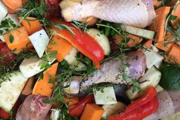 Traybake met drumsticks en verse kruiden uit eigen moestuin 19 september 2016