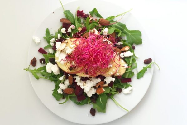 Salade van rode biet, geitenkaas en appel met kiemen 09 september 2016