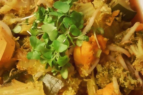 Groene groentencurry met zoete aardappel & broccocress 27 augustus 2016