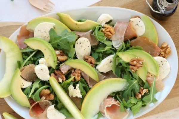 Salade met meloen, rauwe ham en mozzarella 26 augustus 2016