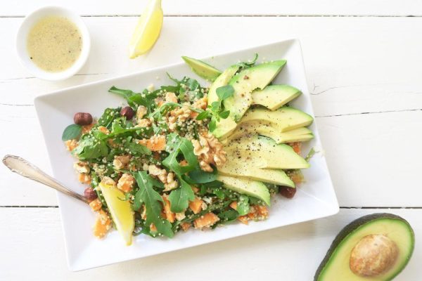 Quinoa salade met zoete aardappels, avocado en mosterddressing 10 augustus 2016