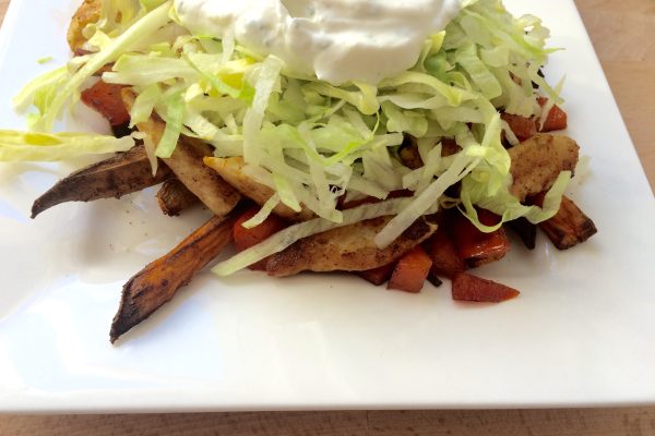 Kikkererwten salade met rucola, gebakken avocado en biefstukreepjes 25 juli 2016