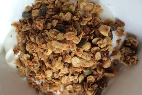 Kokos granola uit de pan met perzik yoghurt 04 juli 2016