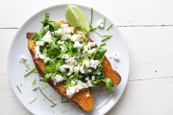 Gepofte zoete aardappel met geitenkaas en honing 04 juli 2016