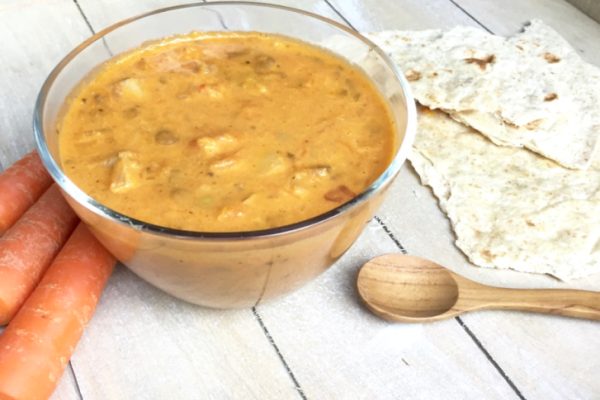 Vega aardappel-pompoen-wortel-linzen curry 05 januari 2016