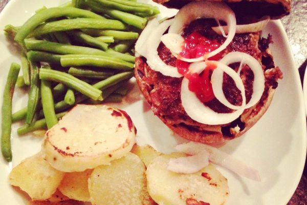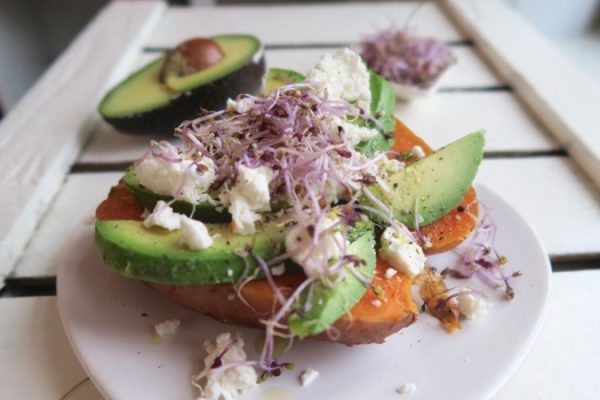 Gepofte zoete aardappel met geitenkaas en kiemen 04 januari 2016