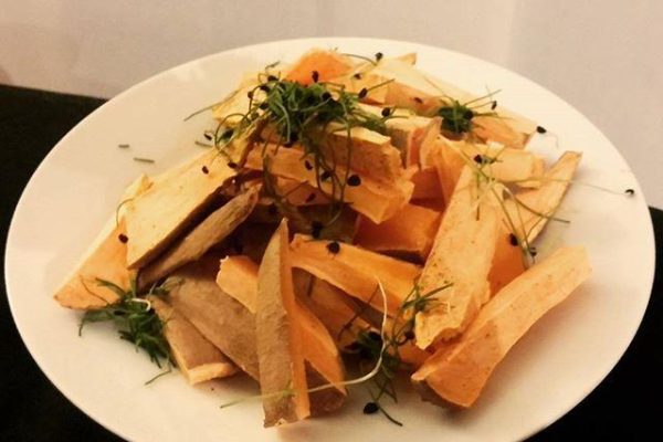 Zoete aardappelfrietjes met knoflookcress 15 december 2015