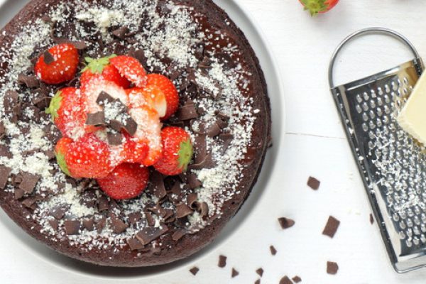 Driedubbele chocoladetaart met aardbeien 04 oktober 2015