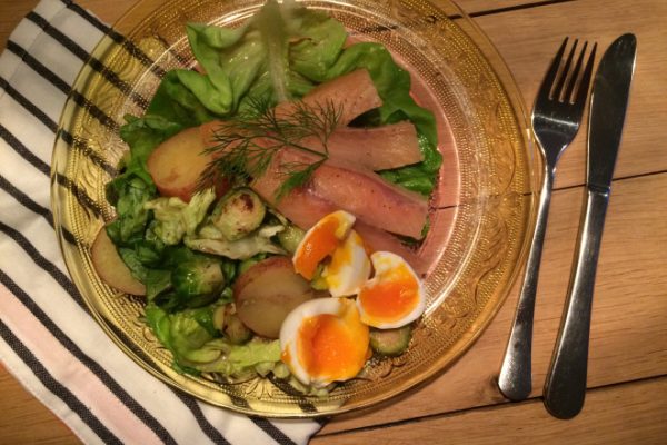 Salade met spruiten, gerookte zalm en ei 22 september 2015