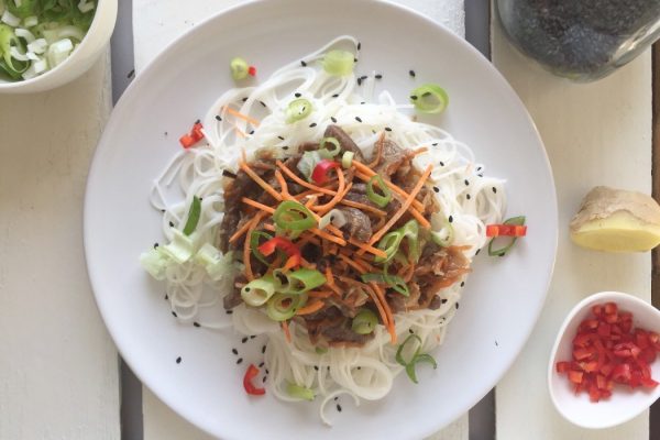 Beefreepjes met rijstnoedels en pindasaus 13 augustus 2015