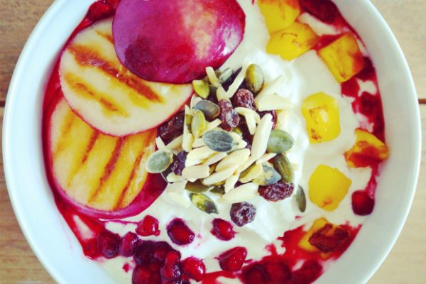 Zomers ontbijt met gegrilde nectarine en mango 05 augustus 2015