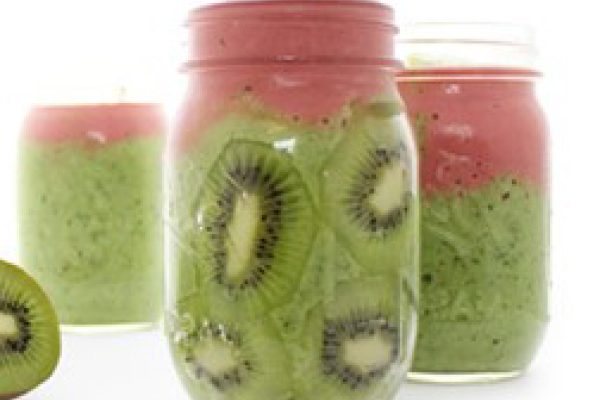 Vrolijke groene smoothie met roze topping 11 juli 2015