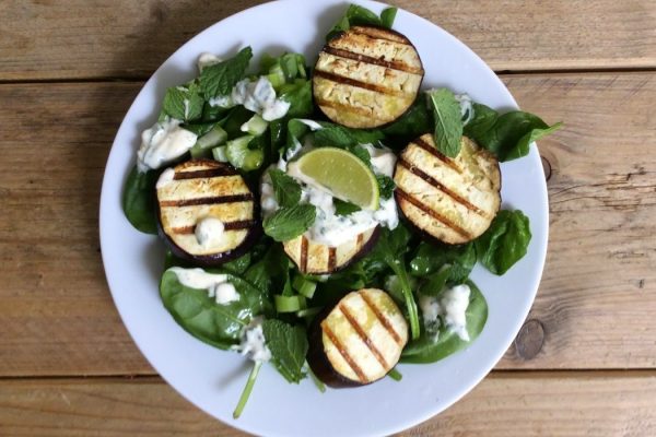 Vegetarische spinaziesalade met gegrilde aubergine 07 juli 2015