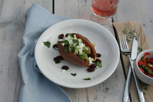 Gepofte zoete aardappel met bonen en pittige salsa 04 juni 2015