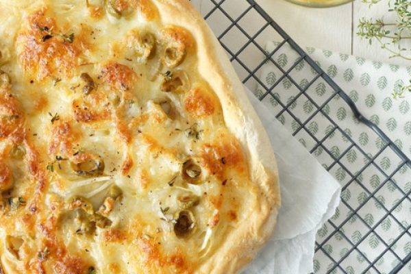 Focaccia met mozzarella, ui en olijven 28 mei 2015