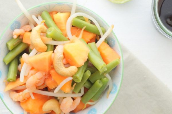 Papaja salade met garnalen en cashewnoten 01 juni 2015