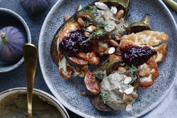 Geroosterde aubergines met halloumi en vijgen 08 november 2019