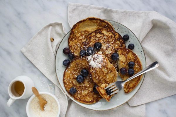 Haver-yoghurt pannenkoekjes met blauwe bessen en kokos 16 november 2019