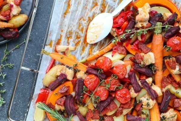 Pompoen uit de oven met aardappels, kip en chorizo 14 november 2019