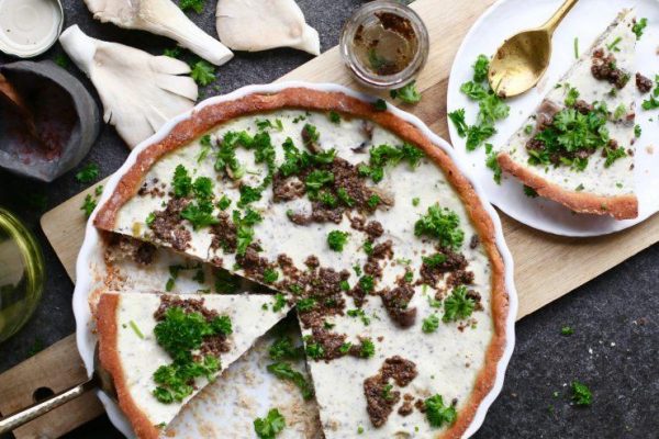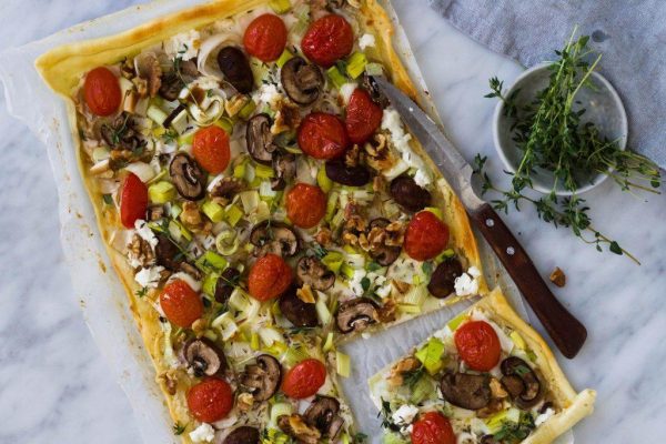 Herfst plaattaart met ricotta, prei, champignons, walnoten en tijm 04 november 2019