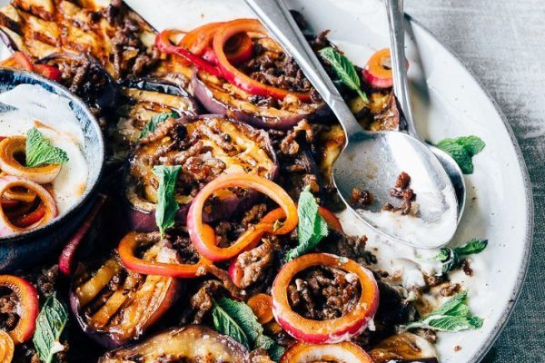 Honing gehakt, gegrilde aubergines en yoghurt 21 augustus 2019