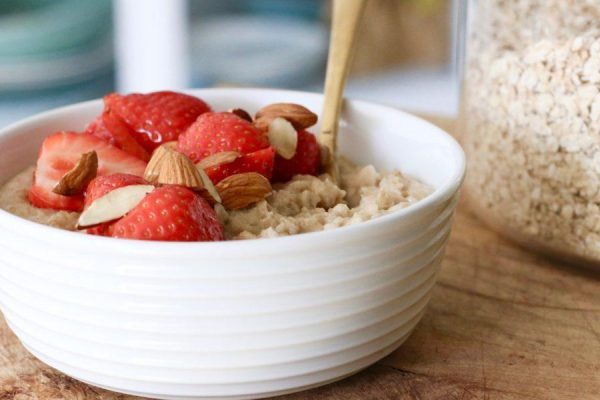 Havermout in amandelmelk met aardbeien 25 juni 2019