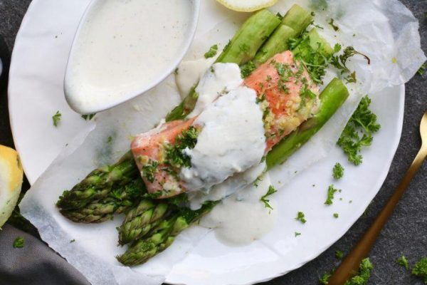 Zalm-asperge pakketjes uit de oven met citroen roomsaus 27 mei 2019