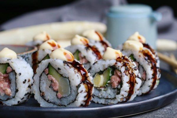 Sushi met witte asperges en unagi saus 25 mei 2019