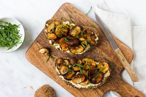 Toast met gebakken champignons, hummus en bieslook 29 mei 2019
