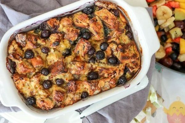 Broodpudding van paasstol met blauwe bessen 23 april 2019