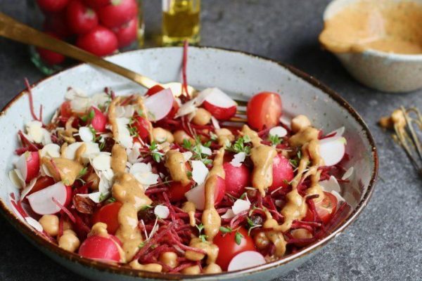 Kikkererwtensalade met biet en pinda dressing 24 maart 2019
