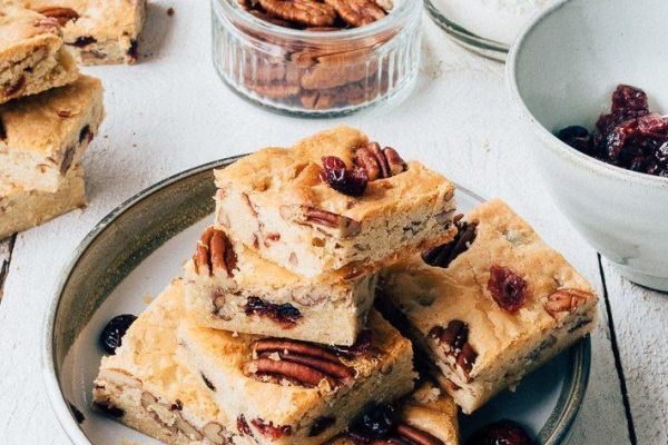 Blondies met cranberry's en pecannoten 17 maart 2019