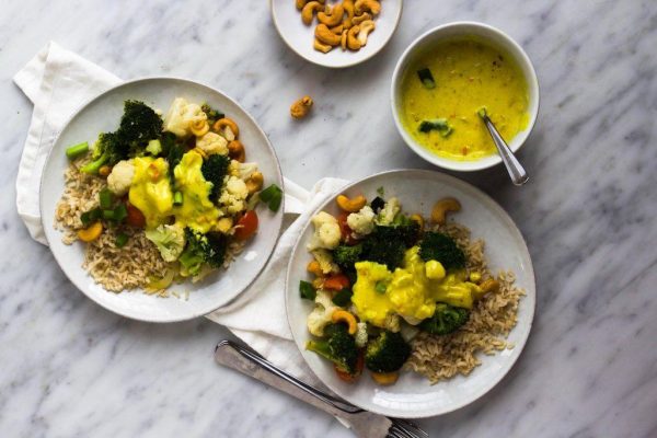 Broccoli-bloemkool met kerriesaus, cashewnoten en rijst 22 maart 2019