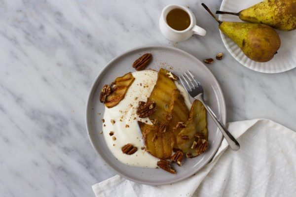 Yoghurt met gegrilde peer, honing en pecannoten 10 januari 2019