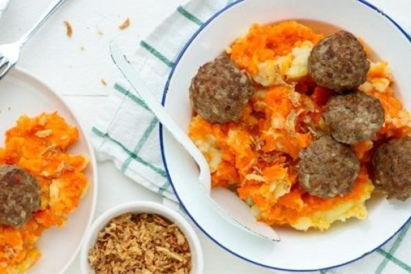 Wortel pompoenstamppot met pittige gehaktballetjes 08 januari 2019