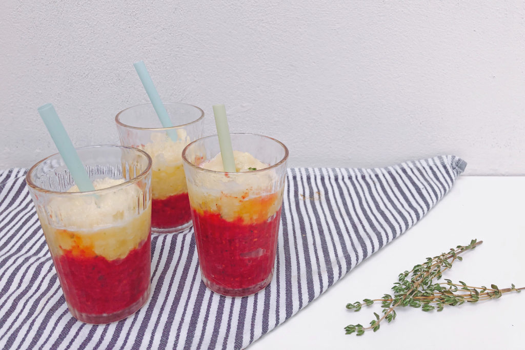 Bij het zien van de blauwe, rode en paarse, draaiende machines stond ik altijd al te springen. ‘Mama, mag ik een slush puppy?’ Ik kwam daar overigens altijd weer snel op terug als er een brain freeze bij kwam kijken. Tot mijn grote teleurstelling mocht ik bijna nooit een slush puppy, maar nu kan ik mijn moeder enigszins begrijpen. Wij hebben een gezondere variant gemaakt: iets minder zoet maar minstens net zo lekker. Een healthy en verkoelend tussendoortje!