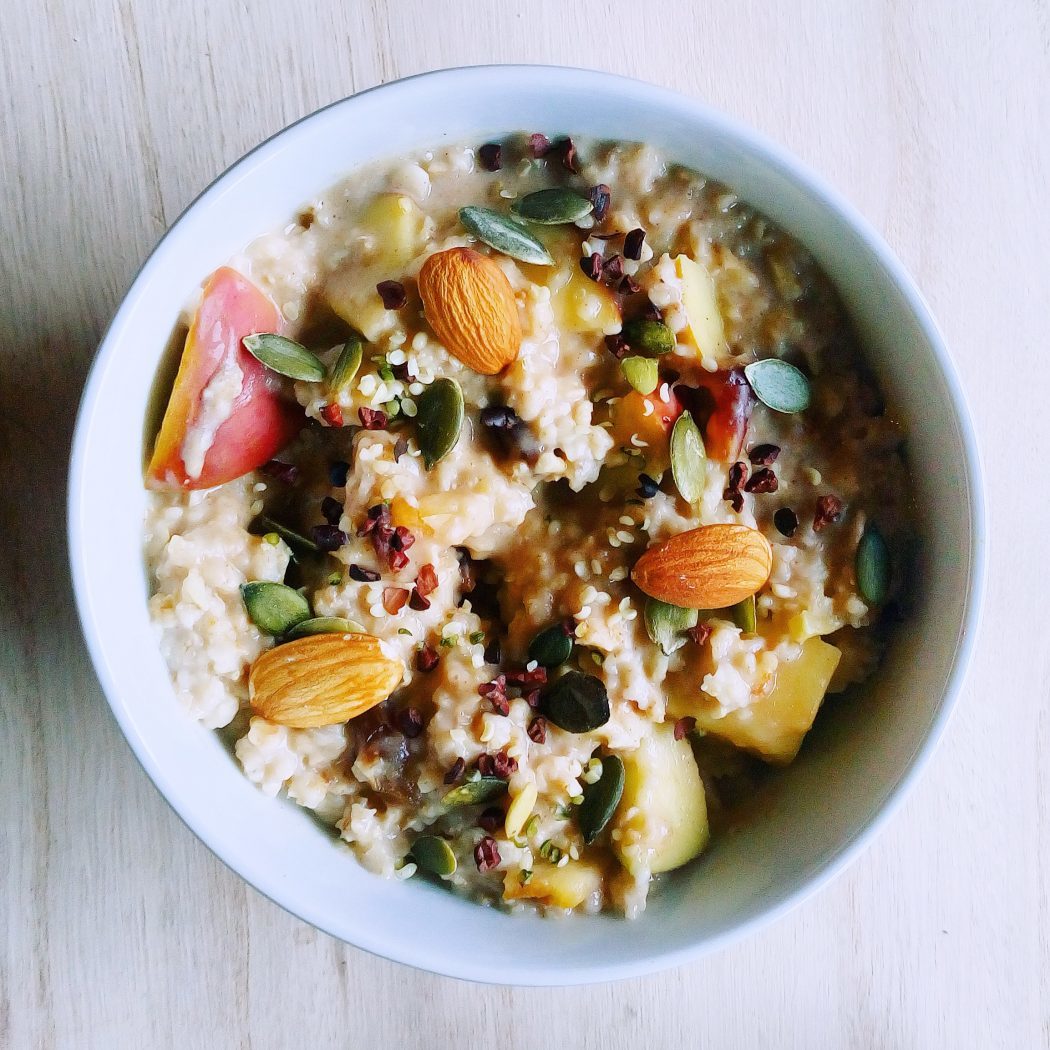 Warme havermoutpap, wat mij betreft het allerbeste ontbijt in de winter! Al sta ik in de zomer met liefde op voor een groene smoothie, in de herfst & winter is jezelf opwarmen met een kommetje dampende havermout toch echt het allerbeste vooruitzicht. Om er maar meteen een feestje van te maken maak ik er gewoon een gezond gebakje van, een écht herfstgebakje! Zet de ingrediënten maar alvast op het aanrecht, jij springt morgen een stuk enthousiaster uit bed als je denkt aan het ontbijtje waarmee jij je dag mag starten!