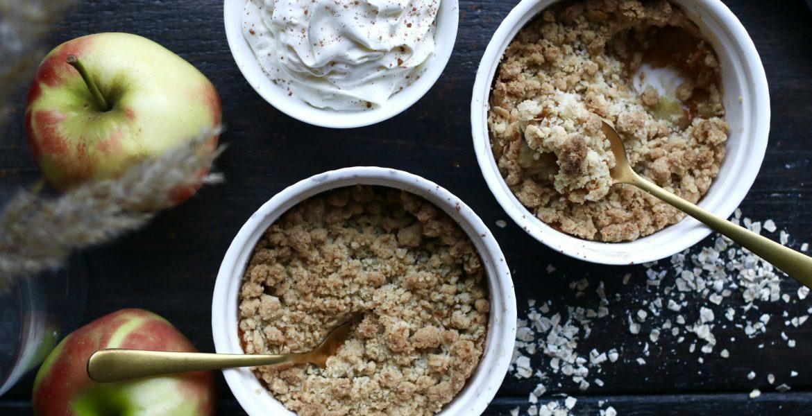 Dit heb je nodig voor deze glutenvrije appelkruimel toetjes / 2 personen