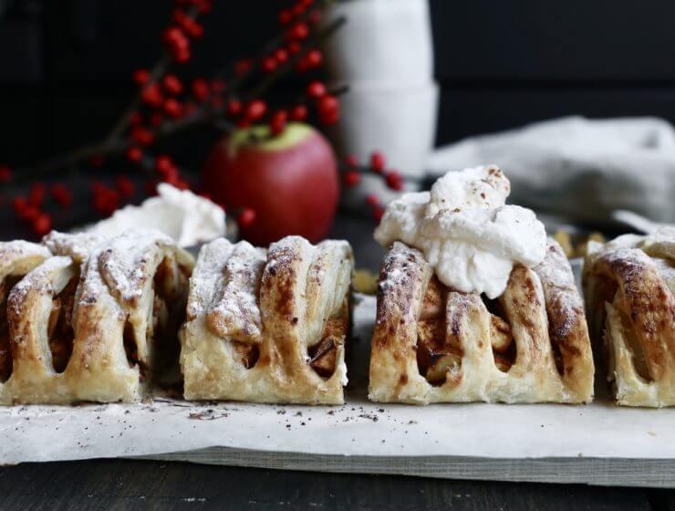 Ik wilde het bladerdeeg from scratch maken (van havermout), maar omdat het juiste recept nog niet uit mijn handen is gekomen gebruik ik in dit recept kant en klaar bladerdeeg. Glutenvrij in dit geval, maar je kunt ook gewoon bladerdeeg gebruiken. Bladerdeeg maken is op zich niet heel moeilijk, maar in alle bestaande recepten die ik vond moet je het deeg tien keer uitrollen, een uur in de koelkast laten rusten en vervolgens weer doorkneden etc. Als je ’s avonds zin hebt in een lekker stuk strudel heb je daar natuurlijk precies geen zin in ;) Hieronder vind je daarom mijn easy peasy recept voor een heerlijke glutenvrije kaneel apfelstrudel!
