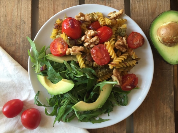 Glutenvrije pasta pesto is zo'n recept wat eigenlijk iedereen wel lust. Toch?! Of je moet niet van pesto houden natuurlijk ;) Ik maak hem met glutenvrije pasta omdat ik anders niet meer functioneer na mijn maaltijd, maar mocht je wel tegen gluten kunnen dan kun je natuurlijk gewone pasta gebruiken. Pasta pesto heeft erg veel smaak dus ik vind het dan altijd lekker om er een frisse salade bij de serveren. Gewoon simpel, met een romige avocado erbij en wat olijfolie.