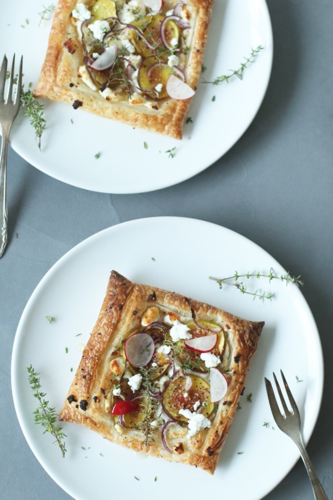 Voor deze plaattaartjes maak ik gebruik van glutenvrij bladerdeeg omdat ik niet zo lekker ga op gluten. Heb je daar zelf geen last van? Dan kun je natuurlijk ook kiezen voor gewoon bladerdeeg.