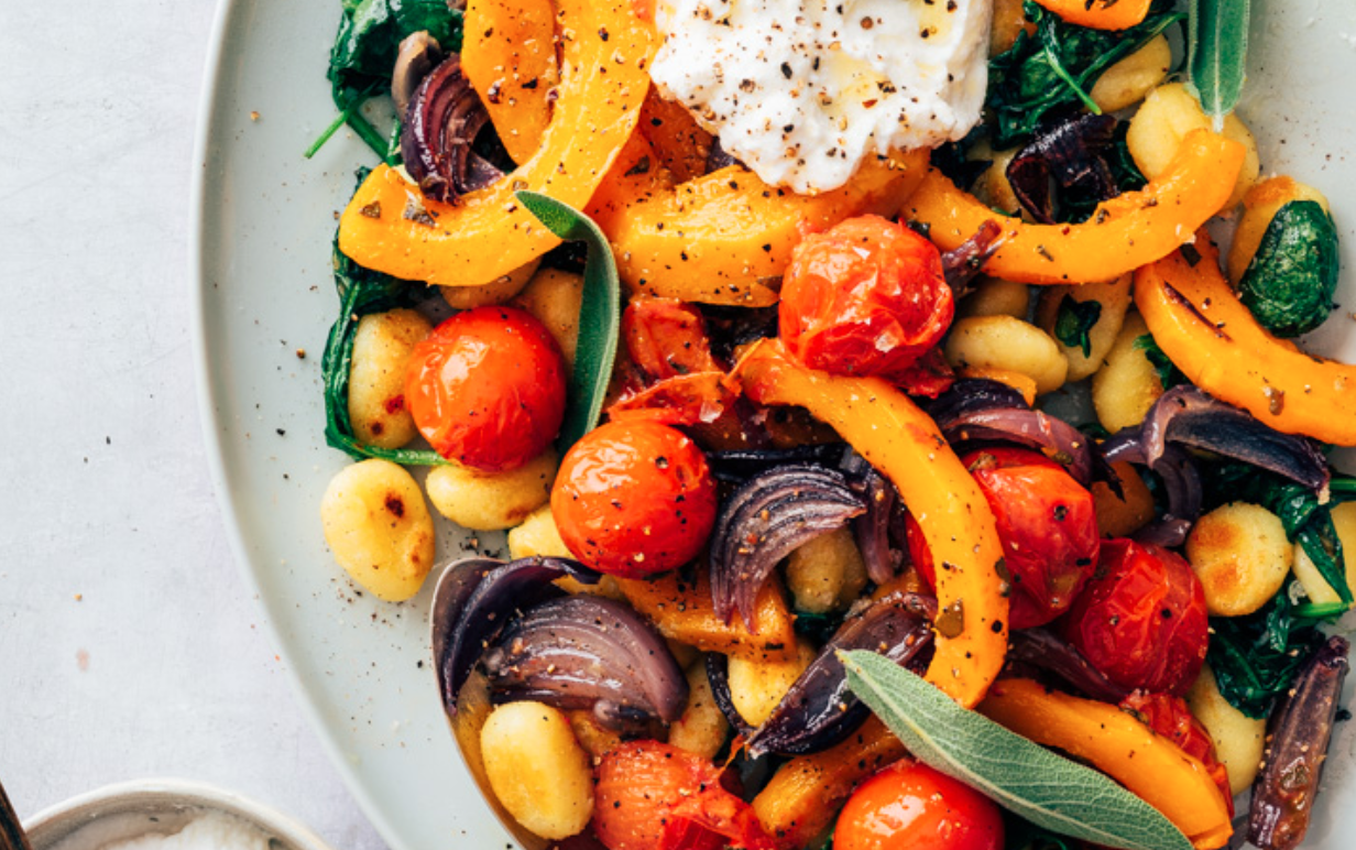 Gnocchi met pompoen: dit is zo’n maaltijd waar ze hier thuis vaak om vragen. Terwijl de pompoen in de oven langzaam zoet en zacht wordt, vult de keuken zich met de lekkere geur van salie en knoflook. Ondertussen bak je de gnocchi tot ze goudbruin en knapperig zijn, en dat geeft zo’n fijne bite. Totaal anders dan wanneer je ze kookt! Daarna komt alles samen op één bord, met een flinke lepel romige ricotta en wat pittige chilivlokken.
