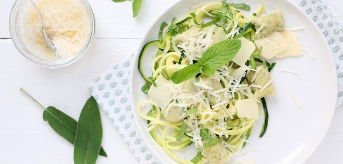 pasta wilde laten terugkomen, bedacht ik om gnocchi van courgette te maken. Een stuk lichter, en perfect als voorgerecht zo!