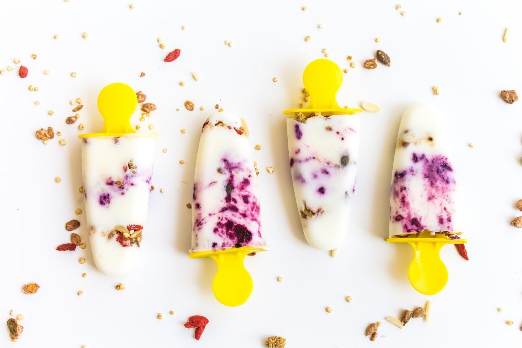 Nieuw in het assortiment van BitesWeLove zijn granola's. Als onbijt in je yoghurt kennen we die inmiddels allemaal, maar wist je dat granola ook heel lekker is in een fris ijsje? Deze granola ijsjes, gemaakt met granola-bites, yoghurt en een beetje bosbessenjam zijn super makkelijk te maken. En je kunt er ook nog eens eindeloos mee variƫren. Laat die zomer maar komen!