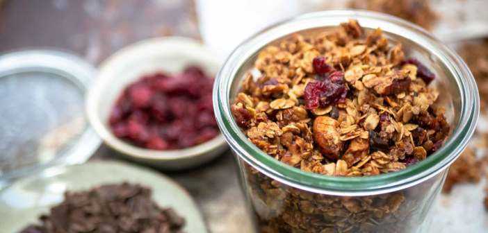 Granola met gedroogde cranberries en pure chocola