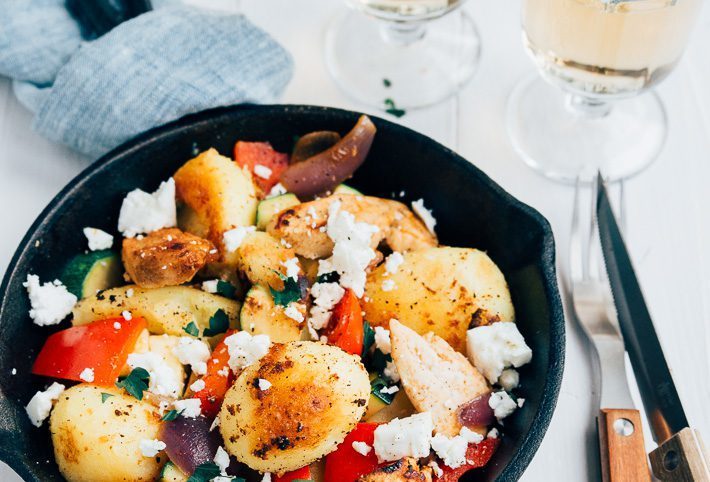 Nu laat ik het snijden achterwege want ik had zin in een lekker grof aardappelpannetje. Op zijn Grieks dus met kip met oregano en komijn en courgette, rode ui en feta. Superlekker! Ik gebruik hiervoor Oma’s vastkokende aardappelen van CêlaVíta. Deze smaken net als hoe ik ze vroeger thuis kreeg. Ik ben fan! Een stukje nostalgie op je bord maar dan in een modern jasje. Want vroeger kreeg ik het echt niet zo gepresenteerd. Door alles in één pan te bakken, worden de smaken gemengd en dat is heel lekker. En het is makkelijk en snel. Ook fijn.