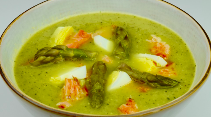 Onverteerbaar en vezels in één zin en toch doe je er verstandig aan deze groene aspergesoep met zalm vol met onverteerbare vezels (prebiotica) op het menu te zetten: "Asperges, en met name de groene blinken uit in de de hoeveelheid prebiotica. Deze fungeren als 'smeermiddel' voor je darmen en stimuleren de groei van gezonde bacteriën."
