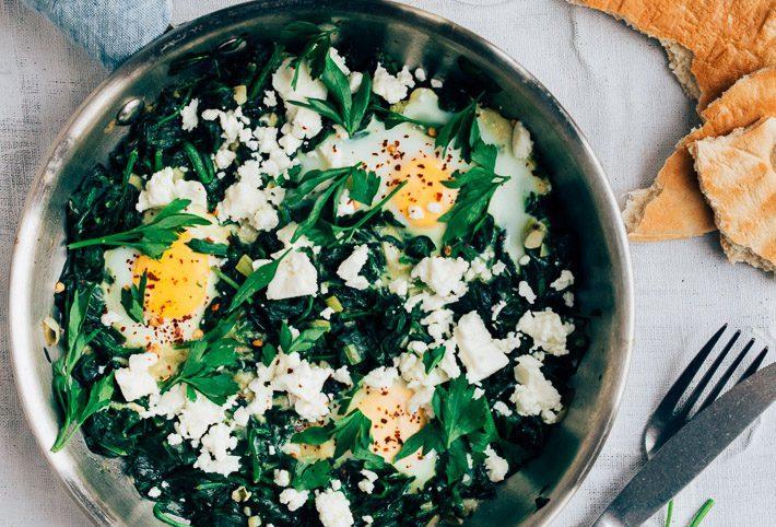 De eitjes worden als het ware gepocheerd in de groente. En dat klinkt ingewikkeld maar dat is het niet. Het is gewoon een kwestie van groentes aanbakken, eitjes toevoegen en wachten. Voor de lunch kan je er met zijn drieën van eten, maar wil je het als hoofdgerecht serveren, dan is het voor ongeveer 2 personen voldoende. Serveer er lekker pitabrood bij en je hebt een heerlijke maaltijd.