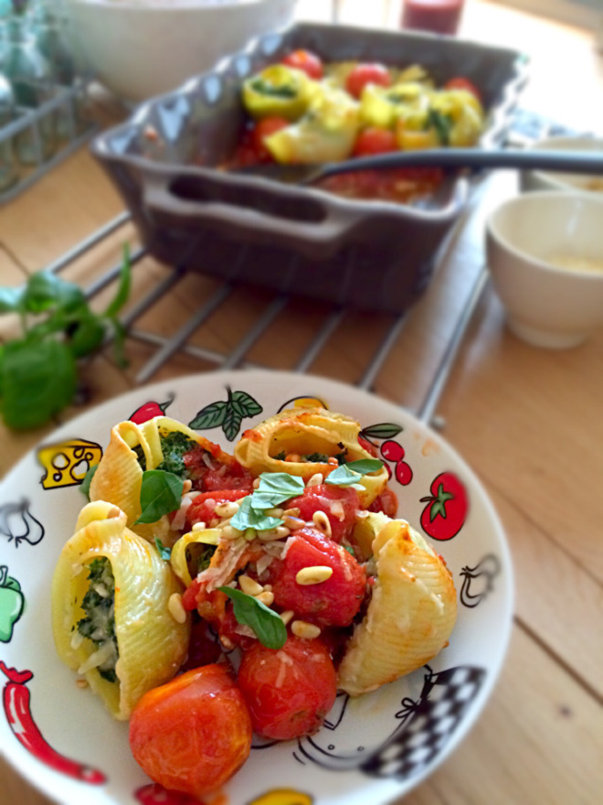 Eerder vertelde ik jullie over de verschillende soorten pasta die er zijn en welke saus daar het beste bij past. Vanuit Italiƫ kreeg ik een paar prachtige pastasoorten thuisgestuurd en de meesten zijn inmiddels op. De grote schelpen bleven echter wat langer liggen, omdat ik niet precies wist wat ik er mee wilde maken. Ik bedacht me dat het lekker was ze te vullen met spinazie en ricotta en kwam erachter dat meer mensen dit idee hadden. Het internet staat namelijk vol met dit recept.